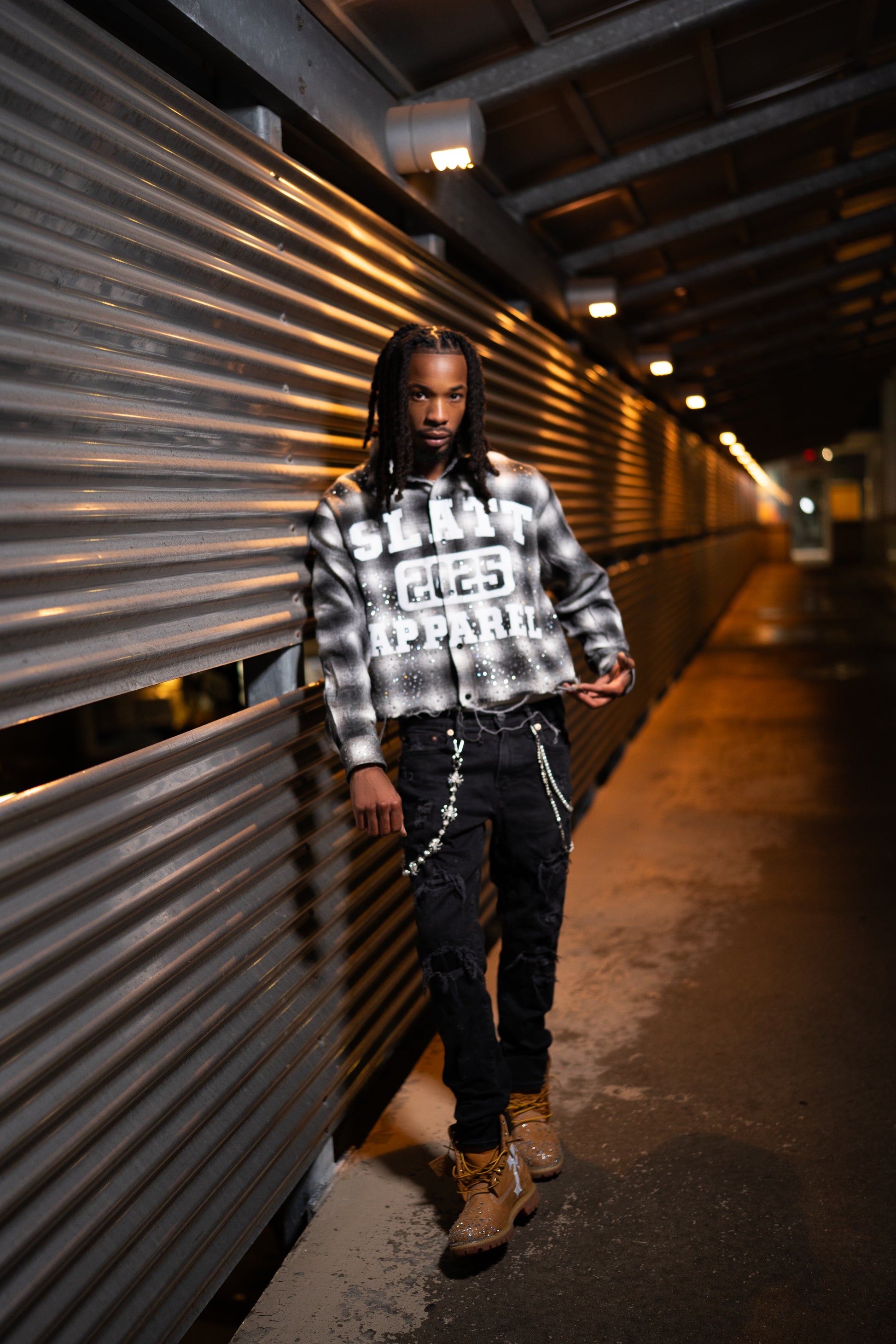 BLACK SUN FADED DISTRESSED RHINESTONE FLANNEL